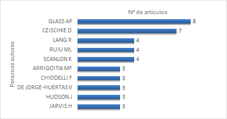 El liderazgo en la investigación sobre vivienda colaborativa es predominantemente femenino y multidisciplinar. Destacan Darinka Czischke y Anne Glass por su notable productividad e impacto. Las autoras más citadas y pioneras en este campo son Helen Jarvis, Joanna Williams y Dorit Fromm. Este estudio es coherente con la Ley de Lotka y la Ley de Bradford. España es el tercer país con mayor producción, sin embargo, no figuran personas autoras españolas en los primeros puestos de las clasificaciones de producción ni de impacto, así como ninguna publicación española figura en los primeros puestos de las revistas que aglutinan la investigación.