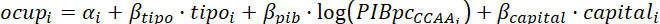 PIB/región de afiliación y la residencia en una capital de provincia, se formalizó