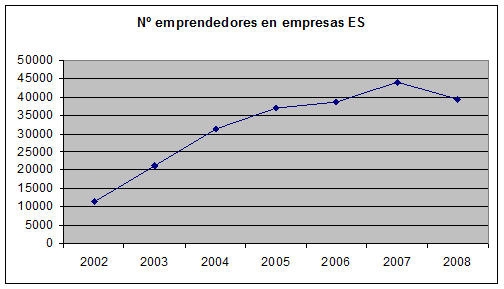 Un mayor número de emprendedores supone la creación de nuevas empresas y por lo tanto de oportunidades para contratar trabajadores. Si uno de los mayores problemas de la crisis es la destrucción de empleo, la actividad de los emprendedores puede tener efectos positivos en la recuperación del empleo. De hecho, las cifras del Observatorio Español de la Economía Social (2009) (Figura 1) muestran que un número importante de trabajadores (39.302 en 2008) utilizaron la prestación por desempleo (concretamente capitalizaron la prestación en su modalidad de pago único) para iniciar una actividad como emprendedores ya sea de forma autónoma o mediante su incorporación a una empresa de participación como socios trabajadores o socios de trabajo en cooperativas o sociedades laborales. En el periodo de 2002-2008 fueron 222.744 los trabajadores que capitalizaron su prestación incorporándose a empresas de Economía Social, destinando el 100% de la misma como aportación inicial para ser socios. La evolución ha sido muy positiva, pues se ha pasado de una cifra de algo más de 11.300 trabajadores en 2002 a los 39.300 en 2008. En 2003 y 2004 se apreciaron sendos crecimientos importantes de 10.000 trabajadores por año que se constituyeron en emprendedores vinculados a las empresas de Economía Social y en 2007 se obtuvo el mayor valor superando los 44.000 emprendedores.