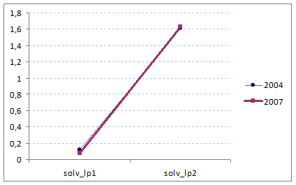 · La media de la mayoría de los ratios que miden la rentabilidad es mayor en 2004 que en 2007. El análisis estadístico confirma que la rentabilidad de las cooperativas es inferior en 2007. Seguramente esta disminución es consecuencia de una caída del nivel de actividad que ha provocado que los resultados en el 2007 sean menores en comparación con los del 2004.