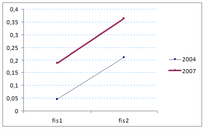 La Tabla 27 muestra un resumen de los estadísticos descriptivos de las variables empleadas para comparar la presión fiscal de las cooperativas en los años 2004 y 2007. Podemos observar que en el año 2007 los dos ratios examinados muestran unos niveles impositivos superiores, tal y como se pone de manifiesto claramente en su representación gráfica (Gráfico 7).