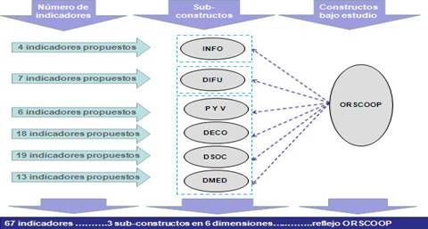 El trabajo de Gallardo et al. (2013b) propone un modelo conceptual complejo considerando la ORSCOOP y otras variables estratégicas. Sobre el mismo, y con el fin de aplicar un modelo cuantitativo, es necesario definir de manera independiente cada uno de los constructos. Así, se necesita construir un conjunto de indicadores que permitan explicar cada una de las variables en el ámbito de las cooperativas, proporcionando de esta manera a la comunidad académica una escala de medida específica para cada sub-constructo reflejado en indicadores observables y medibles.
