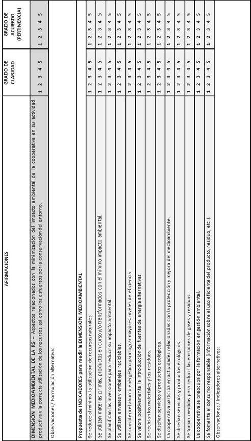 - Dimensión medioambiental de la RSE: La dimensión medioambiental es el último sub-constructo relacionado con la respuesta cooperativa a la información y divulgación de la información en RSE. De hecho, el medioambiente es todavía uno de los principales ámbitos de interés en términos de actitud del mercado hacia la RSE (Bird et al., 2007, Wahba, 2008) y el aspecto de la responsabilidad corporativa que más preocupa a los agentes de interés (Welford et al., 2007). La dimensión medioambiental ha sido determinada por diferentes trabajos que intentaron desarrollar escalas válidas de medida de la RSE (Turker, 2009, Agudo-Valiente et al., 2012, Gallardo y Sánchez, 2012, Lu et al., 2012) o algunos trabajos enfocados en la propia dimensión medioambiental (Montiel, 2008, Pérez et al., 2012). A este conjunto de trabajos anteriores contribuye el presente con un conjunto de 12 indicadores que reflejan las situaciones incluidas bajo la dimensión medioambiental de la RSE.