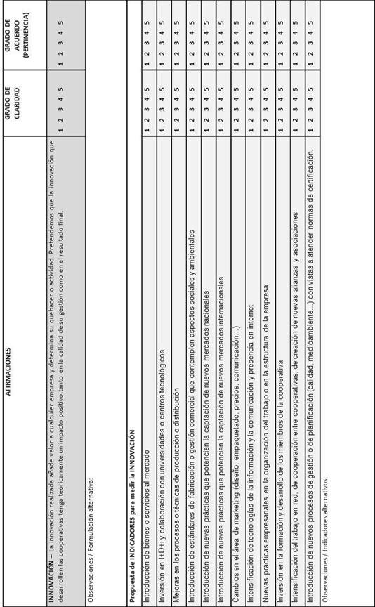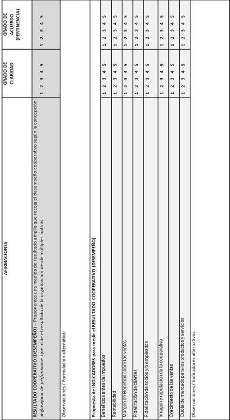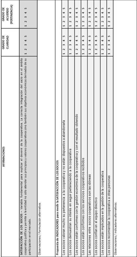Como conclusión de nuestro trabajo señalamos la propuesta teórica y metodológica que hemos presentado para definir las escalas de medida de las variables contempladas. La teoría nos ha ido conduciendo hacia la elaboración de la propuesta preliminar de indicadores para cada constructo pero ¿quién si no los expertos en cooperativismo podrían llegar a delimitar de forma válida y fiable los constructos tratados?. En un sector empresarial de naturaleza tan particular, tan relevante en contextos de crisis económica y tan poco analizado por la literatura, como es el de las cooperativas, pensamos que solo si conseguimos unas escalas consensuadas, válidas y fiables podremos avanzar en nuestros análisis posteriores sabiendo que los resultados que obtengamos en el futuro habrán sido construidos con rigor científico desde la base.