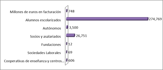 El cooperativismo en la enseñanza según estas cifras, presentan un buen posicionamiento en el sector en un momento en que el mismo está atravesando una crisis que más que profesional ya es social, probablemente también estructural y, desde luego, económica. Esta crisis afecta a la enseñanza en conjunto, es cierto, pero de manera más incisiva a las expectativas profesionales de los enseñantes que ven mermadas, cuando no anuladas, sus expectativas futuras y su calidad de vida profesional. Con este panorama, las cooperativas de enseñanza se plantean como una solución por lo menos a los puestos de trabajo. Un ejemplo de esta tendencia está en algunas especialidades de la enseñanza que ante los problemas planteados se inclinan por salvar puestos de trabajo por medio de la creación de cooperativas de profesores, como es el caso de la enseñanza de ELE.