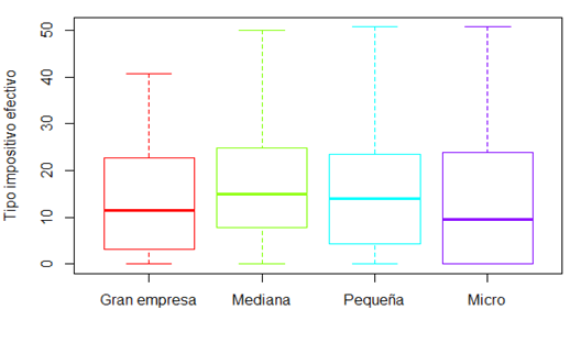 Hemos observado que el tipo impositivo efectivo según criterios fiscales para el período considerado está en torno al 15% como valor medio de las cooperativas. Las micro-cooperativas son las que gozan de una menor presión fiscal (en torno al 13%), seguidas de las grandes cooperativas con un punto porcentual superior. Las cooperativas de tamaño medio son las grandes perjudicadas con una tributación efectiva sobre el 17%. Es muy probable que entre las cooperativas más pequeñas es donde más haya de las especialmente protegidas con los consiguientes beneficios fiscales adicionales. También queremos destacar que, según los resultados obtenidos y al igual que ocurre con las empresas consideradas capitalistas, las grandes cooperativas tampoco son las que tienen una tributación efectiva mayor, estando casi al nivel de las de menor tributación, probablemente debido a la aplicación mayoritaria del régimen de consolidación fiscal por formar parte de un grupo y a la realización de más inversiones en actividades que dan derecho a deducciones (I+D+i, mecenazgo, medioambientales, etc.).