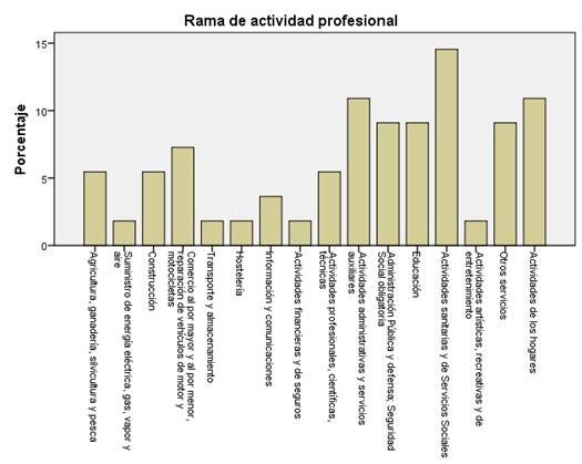 Si bien el 51.9% de la muestra nos dice no tener cargas familiares, detectamos que aquellas familias que tienen a su cargo hijos menores, se concentran en exclusividad en las 2 monedas sociales analizadas (Alcalá y La Oliva) y en los huertos urbanos, contextos relacionados con la provisión de productos de consumo, más que con la provisión de servicios. Si atendemos a las ramas profesionales de origen de los encuestados, podemos ver que destacan las personas que provienen del campo de socio-sanitario (actividades sanitarias y de servicios sociales) en un 14.5% (ver gráfico 1). En cuanto a su situación económica, el 49.3% de la muestra presenta dificultades económicas, y el 14.7 % nos dice depender económicamente de otras personas. Tan sólo el 36% asegurar llegar bien a fin de mes. En líneas generales el 50% tiene ingresos inferiores al SMI[14]. Sobre este aspecto vemos que hay una diferencia intergeneracional: El 50% de las personas con ingresos superiores al SMI son mayores de 60 años, mientras que el 68.6% de aquellos que no llegan al SMI, son personas de entre 18-49 años (el factor “pensión” se presenta como un mejor garante de ingresos que el factor “trabajo”). En términos de género, las mujeres presentan peor situación en cuanto a sus ingresos (suponen el 71.4 % de las personas con ingresos inferiores al SMI).