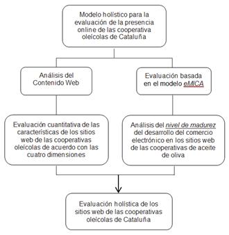 Abstract. Nowadays the role of ICT in business management is a subject of growing interest to both academics and professionals. Web 2.0 has emerged as an important source of innovation that contributes to organizational performance and improving the firm’s competitiveness in the agricultural sector. However, evidence has been found that reveal the difficulties for the entry of these technologies in agribusinesses and their application for effective e-commerce. According to the above, this research seeks to know whether the Web sites of the olive cooperatives facilitate effective communication with their target audiences and are tailored to electronic commerce. In order to do this, it is proposed first of all, a model for the analysis of Web pages oil cooperatives, based on the content analysis technique, considering the dimensions of Information, Communication, e-Commerce and Additional Functions. Secondly the eMICA methodology (Extended Model of Internet Commerce Adoption) applies, to identify opportunities arising from the use of Web 2.0 tools and improve the deficiencies detected for a more competitive management. From the results we can draw that much it remains margin for improvement in the adoption of electronic commerce by Catalan cooperatives in the olive sector. The fact that only 5.8% of websites have reached the stage 3 in the eMica model indicates the low level of functional maturity reached by cooperatives in the development of their Web sites. The results of analysis of web content corroborate these statements.