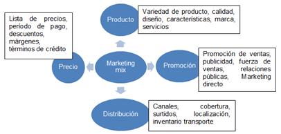 Figura. 3. Las cuatro P’s componentes del Marketing Mix.
