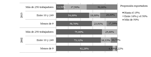 H4. El tamaño de las empresas de Economía Social andaluzas influye en su propensión exportadora en los años 2002 y 2013