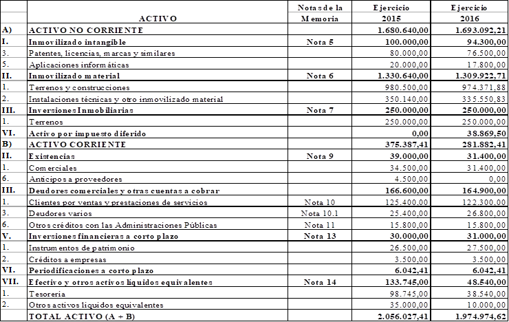 b)          El balance de la sociedad cooperativa que se transforma, cerrado dentro de los 8 meses anteriores a la fecha prevista para la Asamblea. (en nuestro caso práctico, sería el cerrado a 31 de diciembre de 2015).