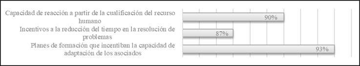 Además, se pudo evidenciar en las organizaciones solidarias estudiadas que la restructuración de los procesos internos y la toma de decisiones, se fundamenta en las habilidades y experiencias individuales que se han logrado explicitar a partir de la definición de agentes responsables. Esto evidencia la transcendencia del capital intelectual en su dimensión humana, para aplicar el cuerpo de conocimiento constitutivo de la memoria organizacional y el desarrollo de ventajas competitivas sostenibles.