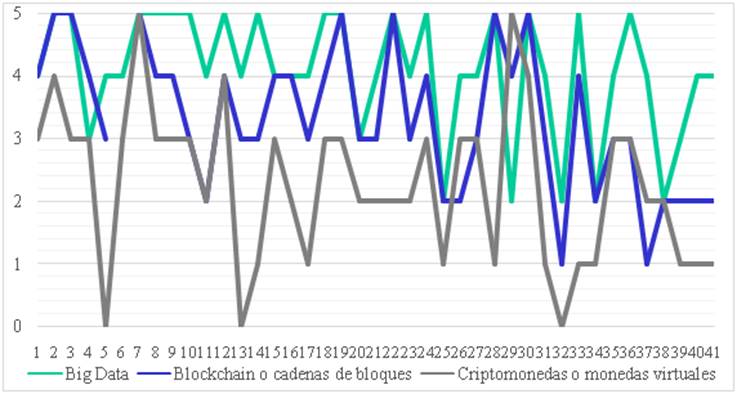 Las entidades analizadas perciben una ligera brecha en esa transformación digital frente a sus competidores los bancos; y son conscientes del fuerte impacto de esta transformación en la actividad económica, reconociendo que algunas tecnologías van a tener mayor protagonismo en su sector de actividad, como es el caso de big data, la computación en la nube y la novedosa tecnología blockchain, frente a otras tecnologías.