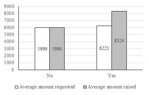 According to Pitschner & Pitschner-Finn (2014), projects promoted by non-profit entities receive more funds. Thus, they have a better chance of reaching the proposed minimum objective. However, they receive a smaller total monetary amount.