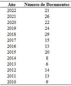 Tabla. 2. Documentos publicados entre los años 2010 al 2022.