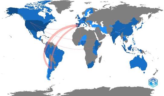 Figura. 3. Mapa de colaboración en la producción científica entre países.