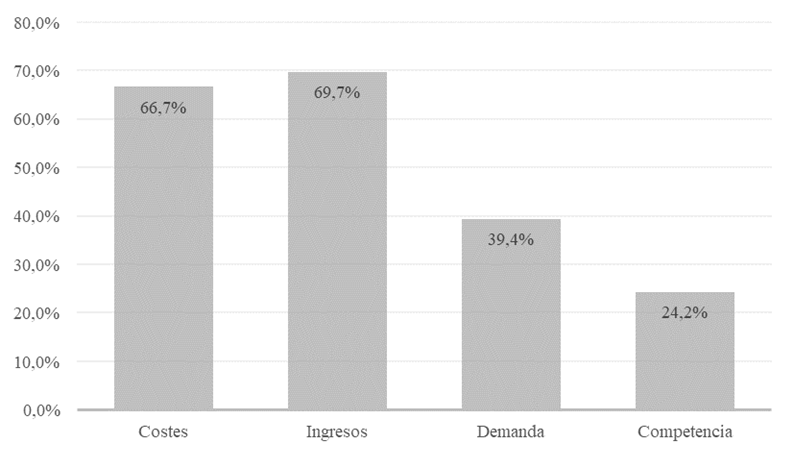 Respecto a la tercera opción (Tabla 4), un 21,21% indicaron que el oleoturismo puede ser rentable a corto plazo, un 18% afirmaron que requiere poca inversión y un 15,15% que posee un alto potencial de venta en almazara, razones que ya destacaron entre la primera y segunda. Por otro lado, un 9,09% indicaron que su razón fue que el oleoturismo está de moda, un 6,06% cree necesario compartir la cultura del aceite y un 3,03% fueron motivadas por las facilidades que están dando las administraciones.