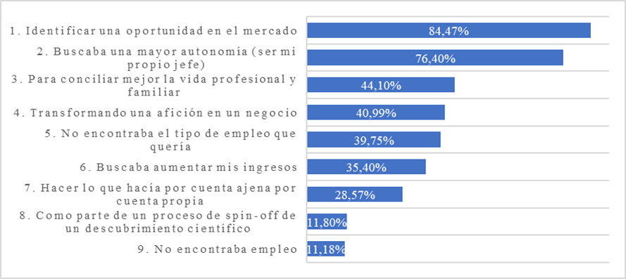 Desde un punto de vista interno, cabe destacar que la gran mayoría de las emprendedoras (82,6%) sentían que tenían las capacidades suficientes para emprender, lo que contrasta con estudios previos en los que las mujeres mostraban niveles menores de confianza en sus capacidades para el emprendimiento (Global Entrepreneurship Research Association (GERA), 2017; Koellinger at al., 2013)