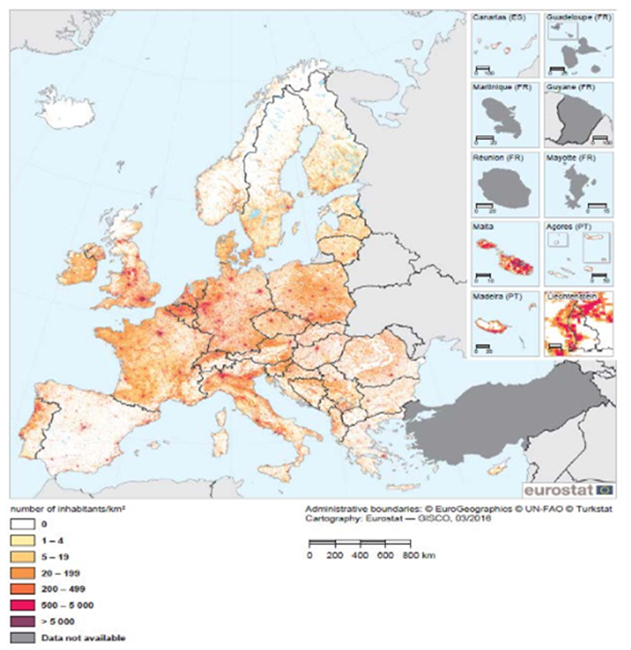 Imagen. 2. Despoblación en Europa (Hab/Km2)