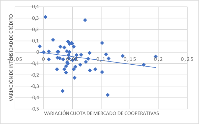Hasta ahora hemos destacado la importancia que tienen las cooperativas en la generación de capital social a nivel local. Sin embargo, siguiendo a Carrasco y Buendía (2013), observamos que el capital social determina el establecimiento de cooperativas, de forma que, a mayor nivel de capital social, mayor presencia cooperativa. Este hecho, unido a lo expuesto en los párrafos anteriores, pone de manifiesto la interdependencia existente entre capital social y cooperativas, sobre todo en el ámbito local.  En esta línea, centrándonos en la presencia del cooperativismo de crédito, podemos llegar a afirmar como hipótesis de partida que en las provincias de la denominada “España vaciada” la existencia de entidades crediticias del tercer sector, con clara vocación territorial, ha contribuido a generar capital social y a mitigar el retroceso del crédito que se ha puesto de manifiesto con la Gran Recesión, pues en España, las cooperativas de crédito han permanecido relativamente al margen de las mayores turbulencias de la crisis, en parte aisladas a causa de sus propias características. Precisamente, estas peculiaridades fueron entendidas durante el período de expansión del crédito como unas “peligrosas debilidades” que dificultaban participar de pleno en la exuberancia financiera.