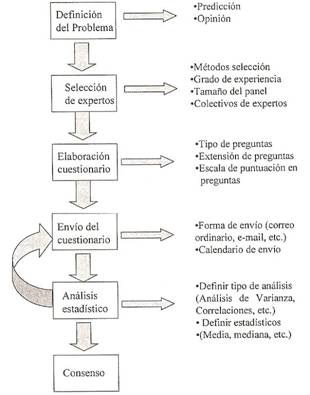 La premisa de partida para la aplicación del método Delphi es la existencia de un problema adecuado para ser tratado mediante esta técnica. A partir de la definición del problema, es necesario determinar un grupo de expertos de características apropiadas para llegar a una solución válida. Una vez garantizada la participación de los expertos, el objetivo por parte del coordinador del estudio debe ser realizar un tratamiento de las estimaciones individuales de los expertos para generar una respuesta estadística de grupo.