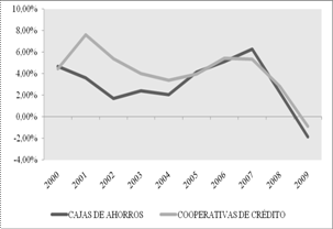 For it there has been used both the descriptive and econometric analysis, using the information that present the Spanish Federation of Savings banks (CECA) and the National Union of Credit cooperatives (UNACC) in his statistical yearbooks.