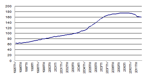 [5] Según las estimaciones de Anguren (2012), la pasada fase alcista del crédito registrada en España sería la más prolongada entre todos los países desarrollados desde los años setenta.