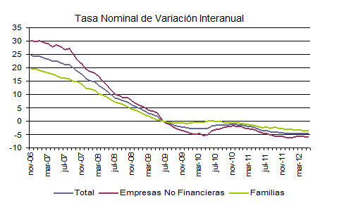 Atendiendo a los criterios anteriormente establecidos, la fase bajista del último ciclo crediticio se inició en junio de 2009, manteniéndose en la actualidad, sin que existan perspectivas de una reversión rápida en este comportamiento de descenso en el crédito concedido al sector privado.