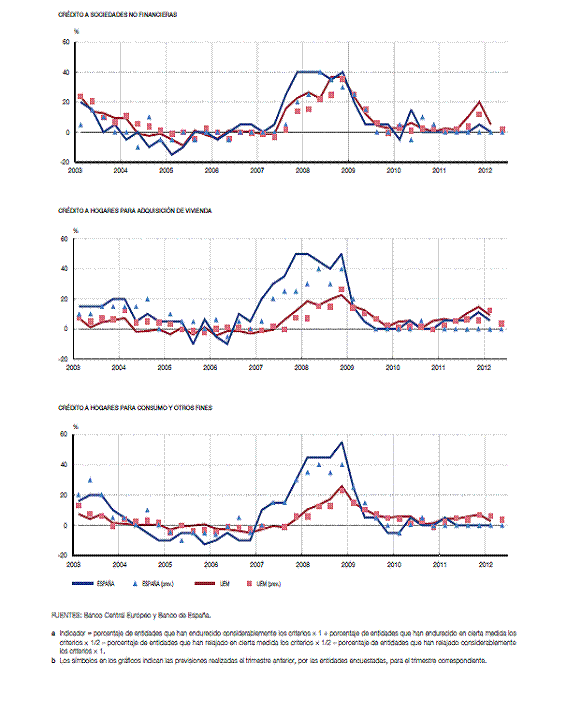 Por lo que se refiere, en primer lugar, al crédito a sociedades no financieras, sus condiciones son, en general, más restrictivas desde el inicio de la crisis, respecto a períodos anteriores.