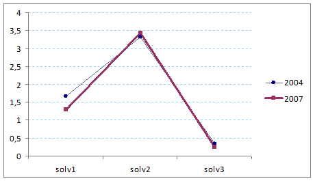 · La media de la mayoría de los ratios que miden la rentabilidad es mayor en 2004 que en 2007. El análisis estadístico confirma que la rentabilidad de las cooperativas es inferior en 2007. Seguramente esta disminución es consecuencia de una caída del nivel de actividad que ha provocado que los resultados en el 2007 sean menores en comparación con los del 2004.