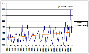 [8] Como indican Harding y Pagan (2002) la duración mínima de 15 meses establecida por Bry y Boschan (1971) es compatible con 4 o 5 trimestres, dependiendo del mes en el que se produzca el punto de quiebre y de las magnitudes relativas de los meses dentro del trimestre. Es por ello que se han calculado los puntos de giro con 4 y con 5 trimestres sin que ello haya variado los puntos de giro, con lo que los resultados se presentan a partir de 5 trimestres.