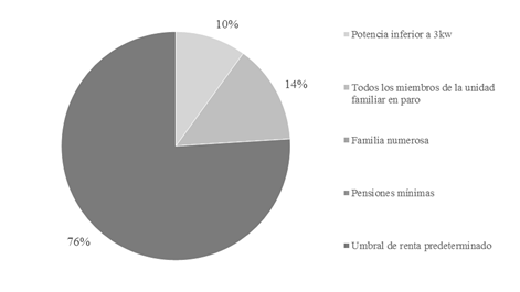 Los requisitos para acceder al bono social no tienen en cuenta criterios económicos como pueden ser los ingresos familiares. En este sentido, al contrario de lo que sostiene Marín Uribe (2009), el bono social no está protegiendo a los consumidores más vulnerables de las subidas de la tarifa eléctrica. Puesto que la pérdida de poder adquisitivo de las familias es una de las principales causas del aumento de la pobreza energética (Tirado Herrero et al., 2014), redefinir el concepto de consumidor vulnerable es una prioridad.