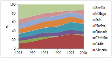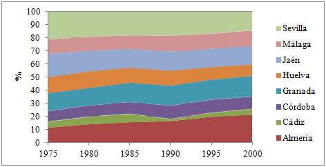 En Andalucía, durante la segunda mitad del siglo XIX, el número de pósitos se situó en torno a los seiscientos. De hecho, en 1907, esta región contaba con 593 instituciones de este tipo, lo que suponía un 17 por 100 del total de estas organizaciones a nivel nacional. No obstante, si se tiene en cuenta el volumen de créditos concedidos, en 1906 los andaluces representaban un 68 por 100 de los préstamos en grano y un 69 por 100 de los préstamos en dinero del total concedido por los pósitos españoles (Martínez Soto, 2007). Es decir, aunque los pósitos andaluces no fueron especialmente relevantes a nivel nacional en cuanto a su número, sí lo fueron en cuanto a su volumen de operaciones, manteniendo una actividad muy por encima del resto de organismos de este tipo (Bernal, 1991).
