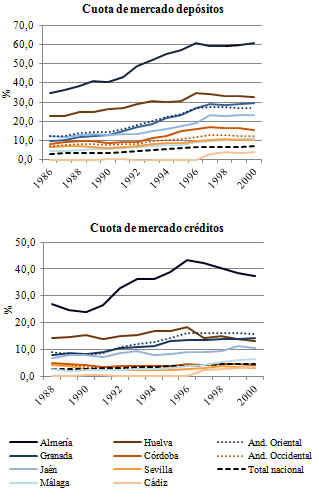 En términos globales, estas entidades y, en especial, las cajas rurales, experimentaron una fase de expansión en el primer tercio del siglo. No obstante, el proceso de crecimiento se detuvo con la Guerra Civil y se ralentizó los años posteriores (Garrido Herrero, 1995; Gámez Amián, 1998). Sin embargo, durante este periodo, el desarrollo de estas entidades en Andalucía fue menor al de otras zonas del país en las que el cooperativismo tenía una mayor relevancia, como puede ser el caso de Valencia, Cataluña o Castilla León (Rodero Franganillo, 1980).