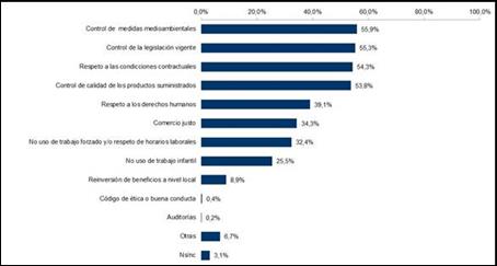Con un porcentaje del 9,2% se evidencia que existe algún procedimiento que permite a los grupos de interés comunicar al Consejo irregularidades. En cuanto a la existencia de un departamento de RSE únicamente se reconoce en un porcentaje del 8,7% de empresas. La existencia de supervisión por parte del Consejo de la aplicación de la política de RSE se da en un 1,7%. Por otro lado, se constata en un porcentaje del 15,2% que existen medidas que permiten la identificación, valoración y gestión de riesgos asociados a aspectos sociales.