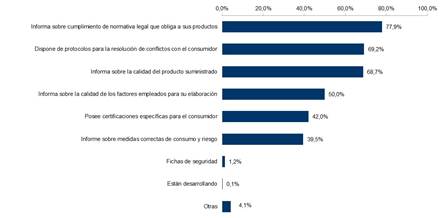 En conclusión, el compromiso de las empresas de ES con sus grupos de interés, es superior en cuanto a las medidas de responsabilidad hacia el consumidor, y en cuanto a la realización de ISR, superando sobradamente el nivel constatado para el conjunto de empresas de la CV. Por el contrario el control de la cadena de proveedores-suministradores son medidas de responsabilidad social inferiormente contempladas por la ES valenciana, con casi 5 puntos porcentuales respecto del total de empresas. La H3 es por lo tanto, sólo aceptada parcialmente, es decir, considerando las matizaciones realizadas.