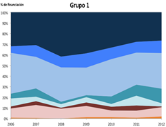 Tabla 1. Estructura de ingresos de cada patrón de financiación para el período 2006-2012.