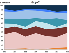 Figura. 4. Importancia relativa de cada fuente de ingresos durante el período 2006-2012.