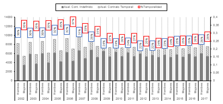 Gráfico. 3. Evolución temporalidad y parcialidad por género.