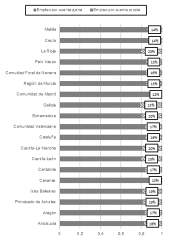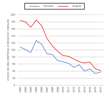 También se ha podido observar un aumento de la presencia de emprendedoras en el sector de la Administración Pública, la educación y la docencia, lo que puede deberse a una extensión del rol reproductivo o de cuidado asignado tradicionalmente a la mujer. Por otro lado, el estudio de los datos pone de manifiesto una fuerte especialización en ciencias sociales, como avala el hecho de la concentración de empresas femeninas en actividades relacionadas con la intermediación financiera, los seguros, las actividades inmobiliarias y los servicios administrativos, científicos y profesionales. Además, en comparación con el colectivo masculino, destaca el elevado número de mujeres que ayudan en empresas o negocios familiares, lo que manifiesta el mayor desempeño de labores auxiliares o de apoyo por parte del colectivo femenino.