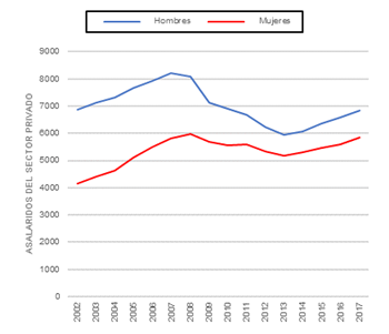 En definitiva, los datos ponen de manifiesto que la crisis ha provocado cambios estructurales significativos en el mercado laboral español. Si antes de este fenómeno la tasa de desempleo masculina representaba prácticamente la mitad del desempleo femenino; la dinámica ha tendido a disminuir estas cifras, hasta llegar a unas diferencias mínimas (ver Gráfico 2). Los datos demuestran que el desempleo ha aumentado en ambos géneros, pero la variación de las tasas femeninas ha sido más gradual y las masculina se triplicaron entre 2007-13.