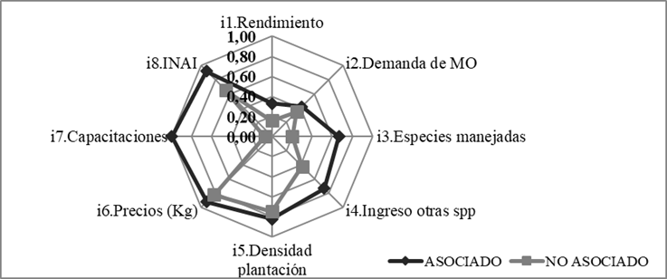 En general, la forma en la que se integran los productores al mercado es un factor que influye en el IS; los no asociados en la cooperativa, por su escaso acceso a factores incidentes en el desarrollo competitivo, tienen como única opción de comercialización los intermediarios locales y baja rentabilidad, pero pese a esto, no han renunciado a la actividad debido a que de ella obtienen un producto de autoconsumo, y forma parte de su herencia socio técnica y cultural.
