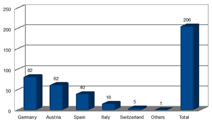 De las 657 empresas identificadas a través del directorio en Europa, 206 empresas han implementado el Balance del Bien Común (BBC), de las cuales 40 empresas son españolas. El peso por países, según muestra la Figura 2, es: Alemania (39,81%), Austria (30,105), España (19,42%), Italia (7,77%) y Suiza (2,43%). El resto de países solo representan el 0,49% del total. La explotación del cuestionario se ha aplicado sobre las respuestas de las 40 empresas españolas sobre una respuesta total en Europa de 206 empresas.