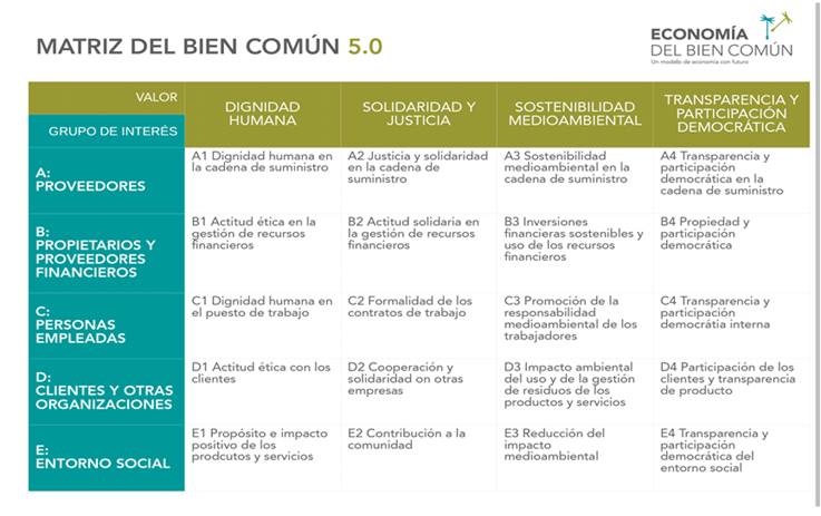 En la actualidad, el movimiento de la EBC está implantado en Europa, América del Norte y Latinoamérica y en cerca de 2 mil empresas de unos 30 países a través de asociaciones gestionadas por la sociedad civil[5]. El principal instrumento que utiliza el modelo es el Balance del Bien Común, a través del cual las organizaciones pueden medir su contribución al bien común mediante el uso de una serie de variables e indicadores que quedan recogidos en la Matriz del Bien Común (Amigo y Ribera, 2018). Este instrumento es utilizado en la actualidad por organizaciones de muy diversas características: comunidades de personas, municipios, universidades, empresas privadas y entidades no lucrativas. Aunque el inicio de su aplicación es el centro de Europa (Austria y Alemania, principalmente), también se ha extendido al sur de Europa, concretamente a Italia y España. En España, existe una Asociación Federal Española para el fomento de la Economía del Bien Común (https://economiadelbiencomun.org/) que agrupa a un número cada vez mayor de empresas y personas y que se ha dedicado a la formación de consultores para facilitar la implementación del Balance del Bien Común en las organizaciones.