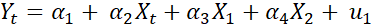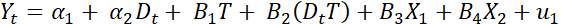 Para sustentar y ampliar los resultados obtenidos de aplicar la prueba de Chow, se procedió a emplear una prueba de análisis estructural con variables dicótomas, ya que esta nos indicara si hubo un cambio estructural o no y si el cambio fue en la pendiente, en la ordenada al origen o en ambas. El procedimiento utilizado es el mostrado por Gujarati y Porter (2010), y se empleó en las seis bases de datos al igual que en la sección anterior. En este sentido de acuerdo con los autores se debe realizar una regresión múltiple que incluirá una variable dicótoma, por ello, en esta investigación se aplica una regresión múltiple como la mostrada en Ecuación 5.