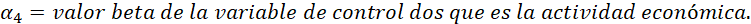 Realizando la regresión múltiple con variables dicótomas de acuerdo con la Ecuación 5, se procede a analizar los valores  obtenidos de cada una de ellas, con el fin de determinar si las regresiones son estadísticamente significativas o no, para lo cual, se toma como referencia que sean mayores al .8 que equivale al 80 %. Una vez identificado si el modelo es significativo, se procede a analizar los valores  del intercepto diferencial  y de la pendiente diferencial , los cuales deben ser menores a 0.05 para que sean estadísticamente significativos. Lo anterior es debido a que si el valor  de ambas o de una sola es menor a 0.05, indican que si hay un cambio estructural, pero, también señalan en donde fue el cambio estructural. En este sentido, si el valor  del intercepto diferencial  es menor a 0.05, entonces, el cambio estructural fue en el intercepto de la ordenada al origen; en cambio, si el valor  de la pendiente diferencial  es menor a 0.05, el cambio es en la pendiente; por último, si ambos son menores a 0.05, el cambio estructural fue tanto en la ordenada al origen como en el valor de la pendiente.