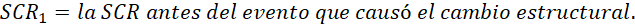 En la Ecuación 4 se presenta el criterio de decisión de la prueba de Chow, en donde se observa que si la  calculada es mayor a la  crítica, se rechaza la hipótesis de estabilidad estructural, es decir, sí hay un cambio estructural. Este criterio se aplica a las seis bases de datos para determinar si las reformas financieras de 2014 si causaron un cambio estructural o no.