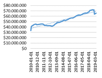 Figura. 1. Gráficos del comportamiento de las SOCAPS de México de 2009 a 2019. Fuente: Elaboración propia con base en CNBV.