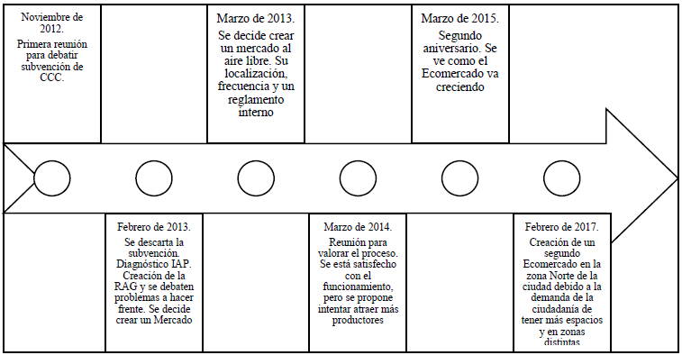 La evolución del Ecomercado de Granada queda resumida en la siguiente línea temporal.