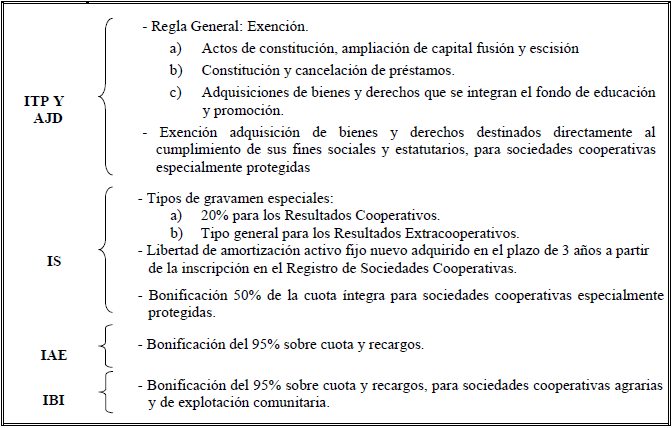 [11] Para un estudio de la fiscalidad de las sociedades cooperativas, puede verse: Juliá Igual y Server Izquierdo (1996), Server Izquierdo y Marín Sánchez (1998), Garrido Pulido, Arenas Torres y Moreno Albarracin (2003), Garrido Pulido y Puentes Poyatos (2005) y Ordoñez Haro (2006).